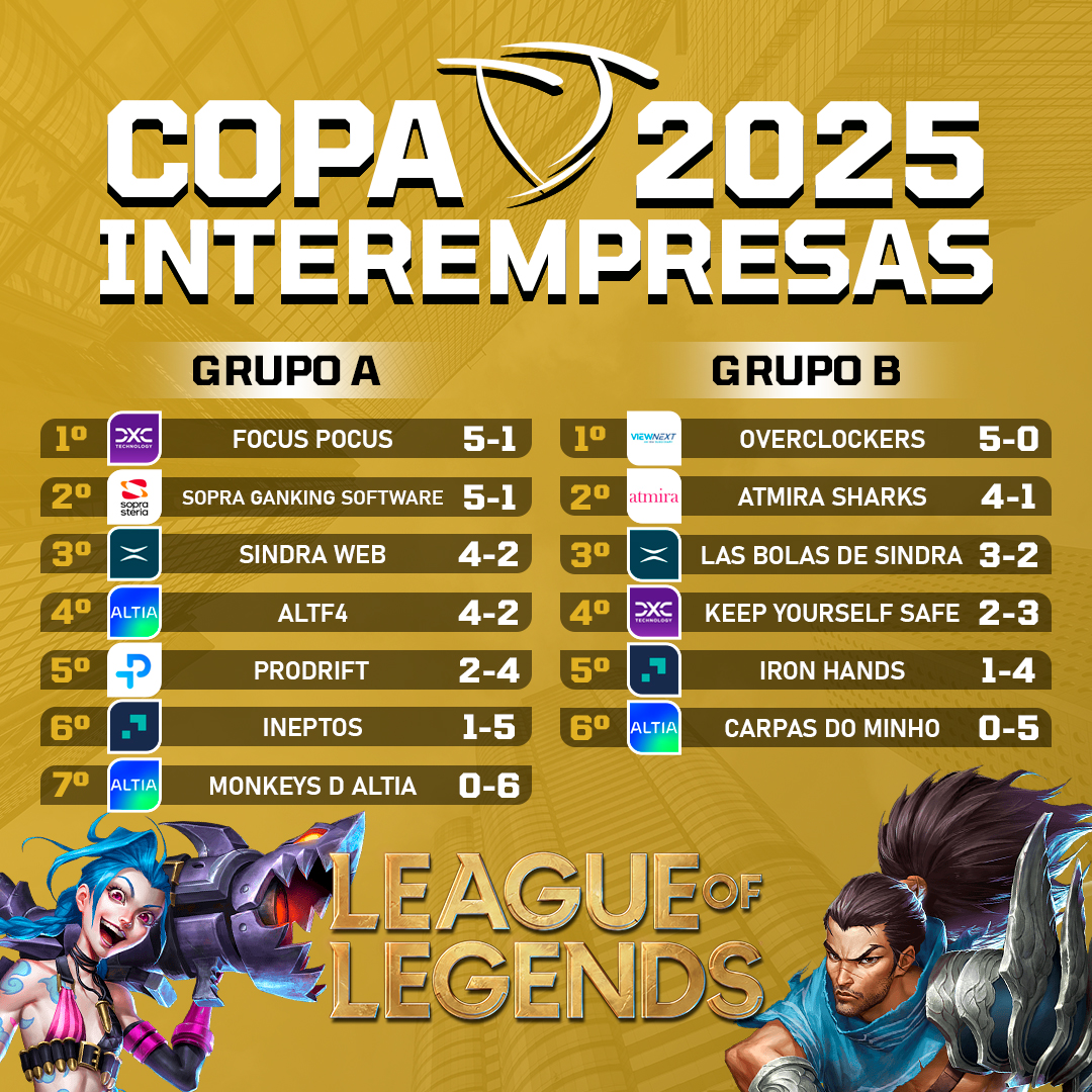 Las 4 empresas participantes en la primera edición de la Copa Evo fueron Inetum, Prodware, Viewnexty Atmira que presentaron su mejor equipo de League of Legends formado por trabajadores.